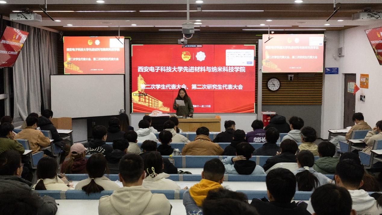 学院党委副书记陈刚发表讲话,他祝贺会议顺利召开,充分肯定了学生会、研究生会工作中取得的成绩,并对团学组织下一步工作提出要求:一是加强思想引领工作、提升育人实效,围绕学院培养电子信息材料创新拔尖人才目标,加强科学家精神学习与实践;二是以团学组织平台发挥朋辈学术科研引领作用,营造砺学、创新的浓厚学术氛围,激发学术科研内生动力;三是将提升朋辈综合素质、打造复合型人才为重要任务,通过举办社区实践、企业研学、志愿帮扶等,了解社情国情民情,拓展综合能力;四是关注朋辈身心健康,通过开展同学们喜闻乐见的文化艺术体育活动,营造和谐、友爱、向上的生活学习氛围,为同学们快乐成长在西电做好服务。